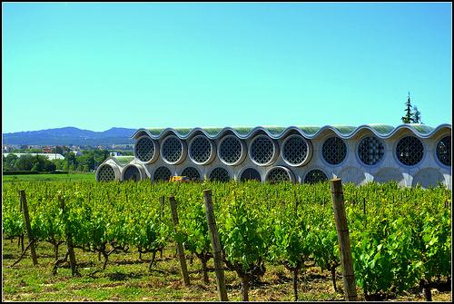 La arquitectura futurista del hotel es de atrevido diseño, Se inspira en botellas de cava